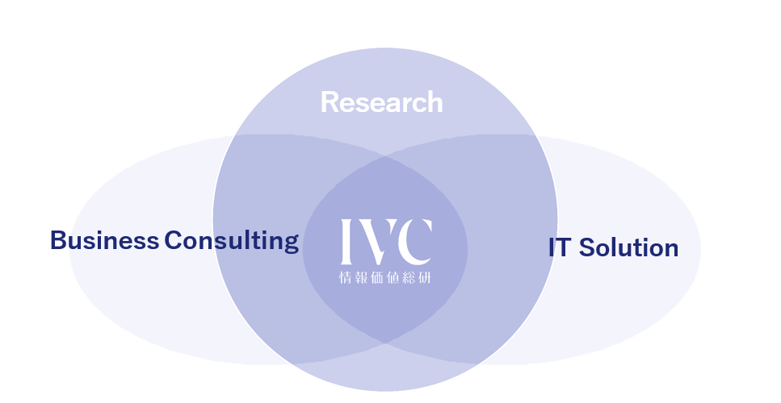 シンクタンク、ビジネスコンサル、ITソリューションプロバイダのクロスオーバー領域こそが私たちIVCの活躍するフィールドであり、強みです。